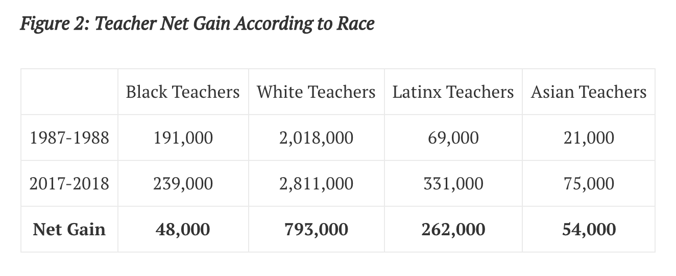 The argument has been made that Black principals (or any principal) shouldn’t just hire Black teachers because they are Black; that the best teacher candidate should be hired. White educators have said that to me and my response was, and is, considering the overwhelming number of white teachers, do you think that every white teacher hired was the best candidate?