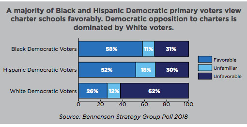 A majority of Black and Hispanic Democratic primary voters view charter schools favorably. Democratic opposition to charters is dominated by White voters.