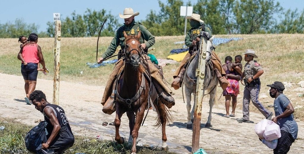 This image of what looks like the Malboro Man from the cigarette box at a human rodeo was a United States border control agent trying to deter and detain Haitian refugees fleeing their country, desperately hoping to gain refuge and a better life in ours.