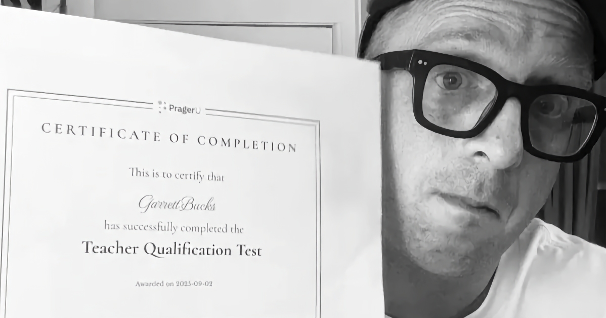I couldn’t resist the test, though. Just layers of artifice, shellacked with lies. An exam that purports to be part of that state’s certification process (it isn’t). That is developed by Prager University (not a college, just a YouTube channel). And which we’re told has been deployed to weed out Marxist teachers supposedly streaming in from New York and California, dead-set on indoctrinating impressionable young Okies (citation, um, needed).