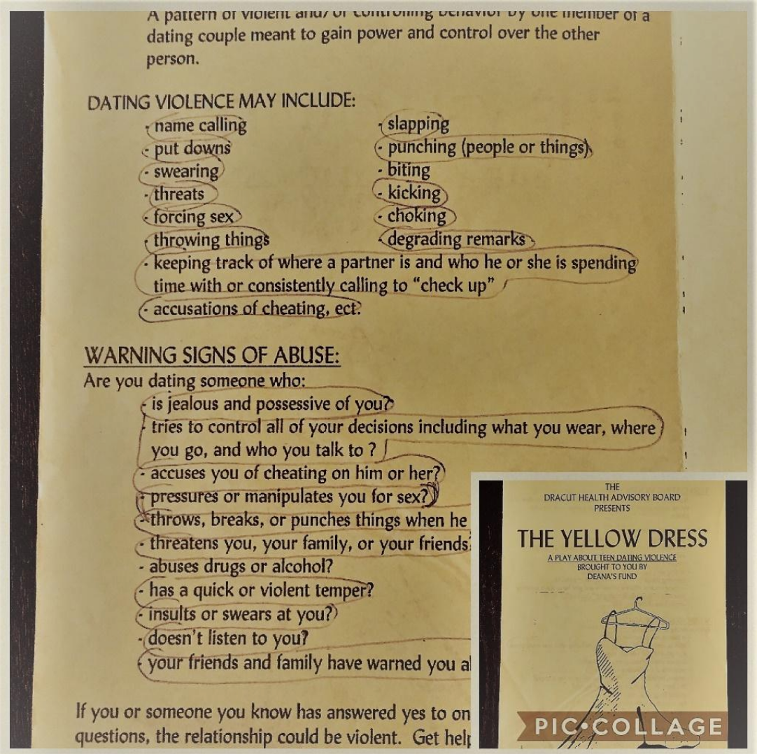 At the end of the play, the young woman is murdered. I walked out of the auditorium feeling dizzy and disoriented. I was brought back to earth when the superintendent, who was standing in the doorway, placed her hand gently on my arm and said, “We can’t let that happen to our students, can we?” I was so taken aback I blushed. “No,” I said meekly as I walked out the door. How did she know? Why didn’t she reach out to me? I later learned that my school was required to address teen dating violence in compliance with