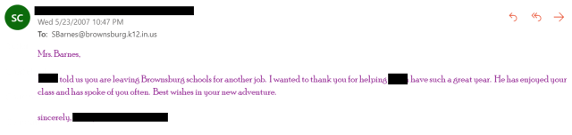 When the school year was almost over, I received the email below. I removed identifying information.