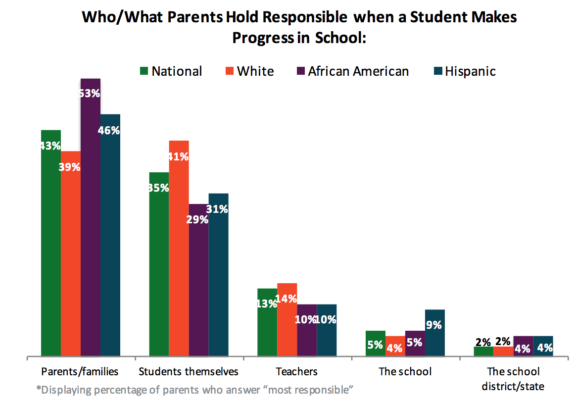 And yet, parents don’t really think schools or teachers have a big hand in determining if a child is learning. In a