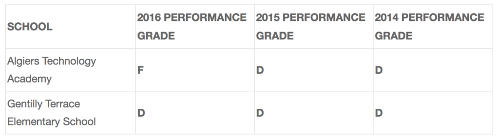 too many D and F schools to list but the number is way too large. And perhaps most concerning is that all of the city’s accelerated high schools received F ratings as well. The Louisiana Department of Education