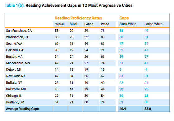 The obvious culprit, poverty, doesn’t explain these discrepancies, as the report asserts: In cities with higher percentages of middle- to upper-income black families, you might expect to see narrower gaps between white and Black students … (W)e found that the gaps between lower-income Black and white students were often about the same as the gaps between upper-income white and Black students …
