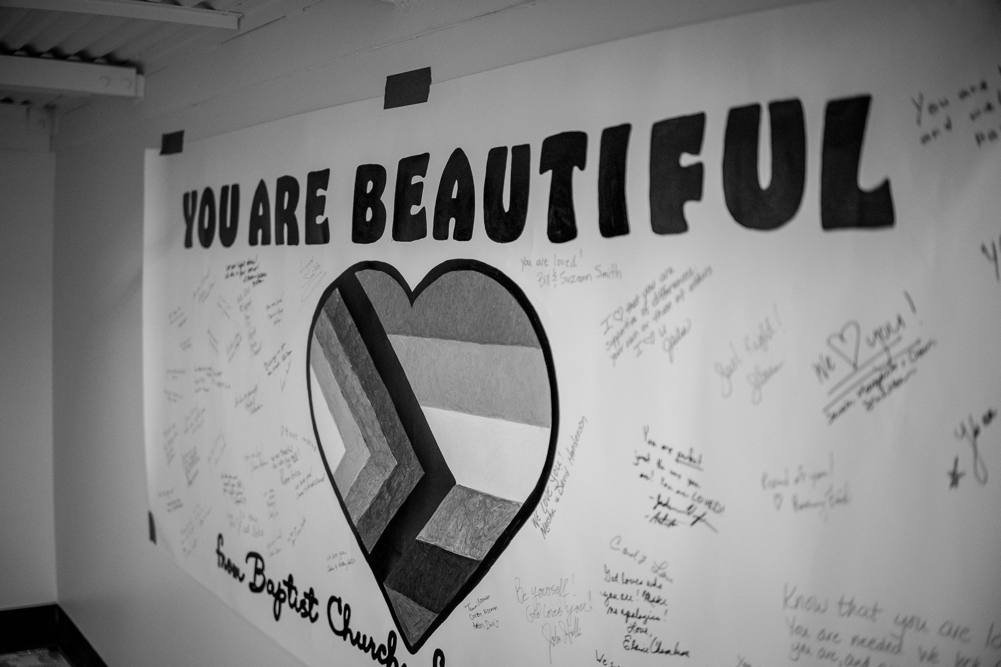 Last Friday large colorful signs from different churches, including Baptist Church of the Covenant, hung along the walls in the cafeteria and the first floor with messages like “You are beautiful” and signatures from its members. Handmade posters sported inclusive and encouraging phrases like “You are perfect just the way you are.”